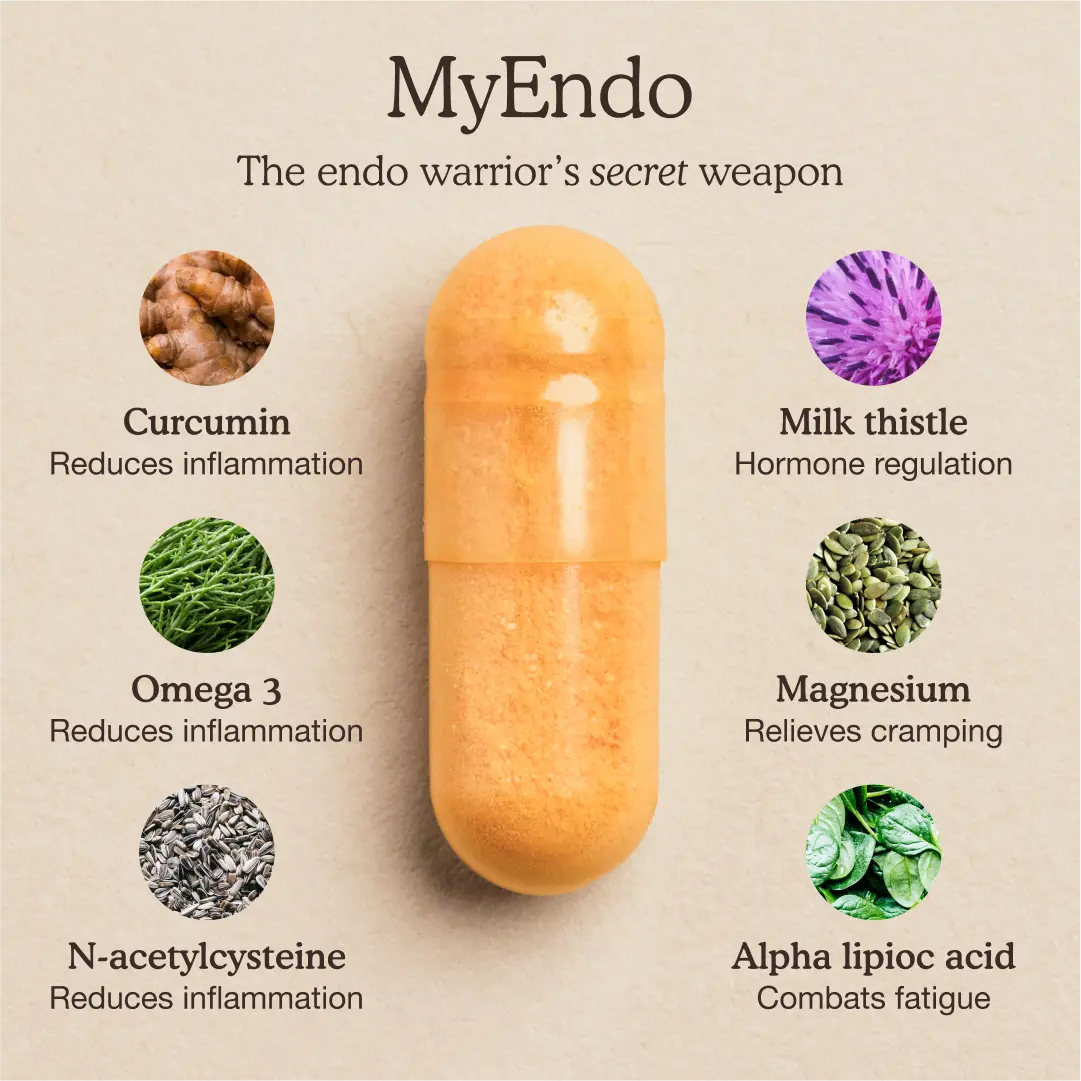 MyEndo contains natural ingredients to actively reduce the severity of your symptoms:
